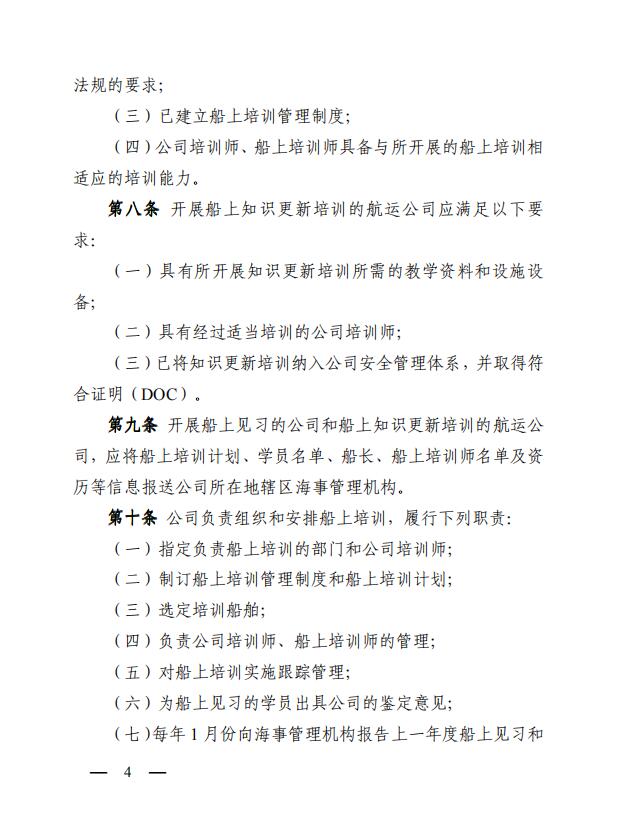 中華人民共和國海事局關(guān)于印發(fā)《中華人民共和國海船船員船上培訓(xùn)管理辦法》的通知